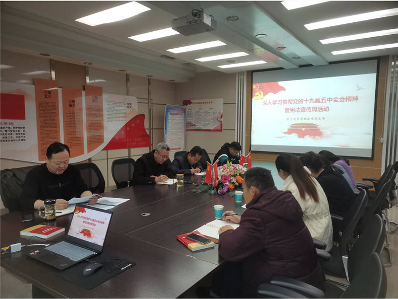 隨后,資產(chǎn)運(yùn)營(yíng)管理公司黨支部開(kāi)展了黨的十九屆五中全會(huì)精神專(zhuān)題學(xué)習(xí),黨支部書(shū)記以“深入學(xué)習(xí)宣傳習(xí)近平法治思想,大力弘揚(yáng)憲法精神”為主題,重點(diǎn)宣傳習(xí)近平法治思想特別是關(guān)于憲法的重要論述以及黨的十九屆五中全會(huì)精神。會(huì)上,黨支部集體觀看學(xué)習(xí)電視政論片《復(fù)興偉業(yè)啟新程——一份歷史性綱領(lǐng)的誕生》,全體黨員領(lǐng)悟到這份繼往開(kāi)來(lái)的宏偉綱領(lǐng)的深刻內(nèi)涵,準(zhǔn)確把握全會(huì)的精神實(shí)質(zhì)和重大部署,自覺(jué)用全會(huì)精神武裝頭腦、指導(dǎo)實(shí)踐、推動(dòng)工作。