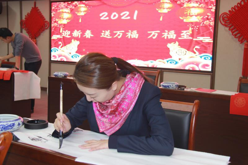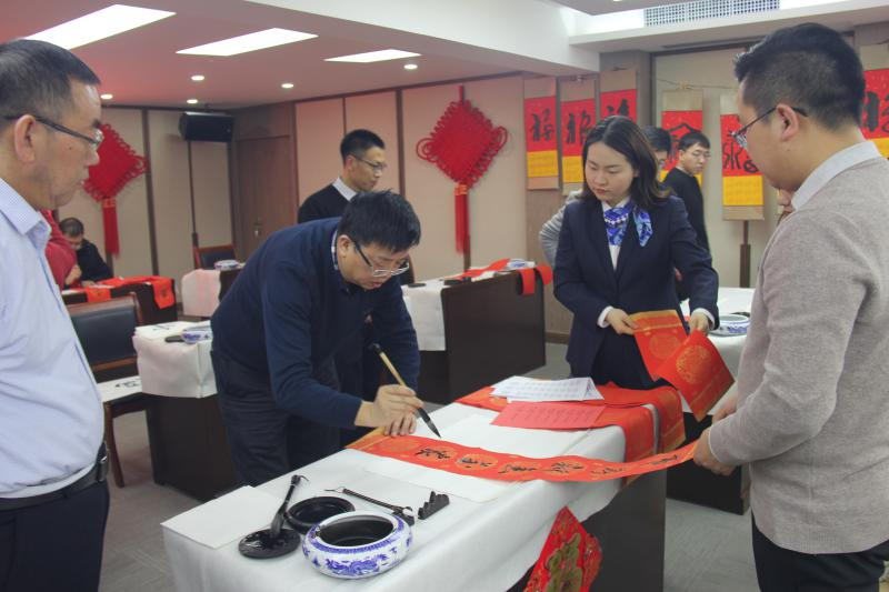 公司書畫愛好者揮毫潑墨,現(xiàn)場寫春聯(lián)送福字,用吉祥如意的春聯(lián),紅紅火火的大“?!弊?,為職工送上新春的祝福。