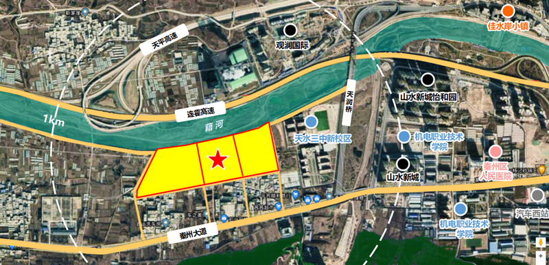 據(jù)了解,該三宗土地位于天水市秦州新城核心地帶窩駝片區(qū),建設(shè)用地面積131431平方米(合197.14畝),容積率3.0,規(guī)劃地上建筑面積約39.43萬平方米。宗地所在的秦州新城是天水市政府招商引資重點規(guī)劃建設(shè)區(qū),近年發(fā)展較快,新建項目逐漸落地,項目依山傍水、環(huán)境優(yōu)美,緊鄰天水三中,周邊教育、醫(yī)療、商業(yè)配套日趨成熟,鄰近城市主干道秦州大道,出行便捷,發(fā)展前景廣闊。