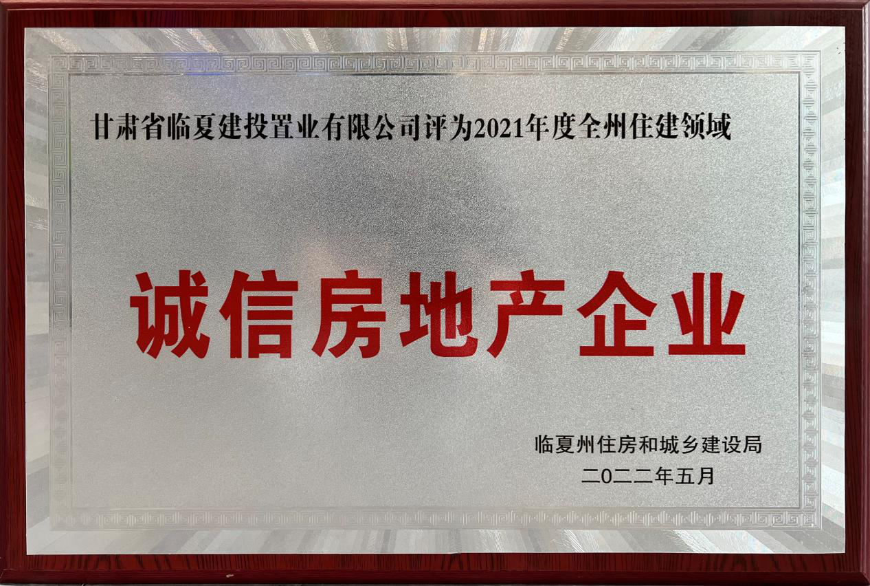 本次評選是由臨夏州住房和城鄉(xiāng)建設(shè)局根據(jù)房地產(chǎn)企業(yè)2021年納稅貢獻情況、企業(yè)資質(zhì)等級、代表樓盤質(zhì)量品質(zhì),在房地產(chǎn)開發(fā)、房屋銷售及交房過程中無重大信訪投訴事件,房地產(chǎn)行業(yè)內(nèi)誠實守信、秩序規(guī)范等因素進行考核,最終評選臨夏公司為臨夏州誠信房地產(chǎn)企業(yè)之一。