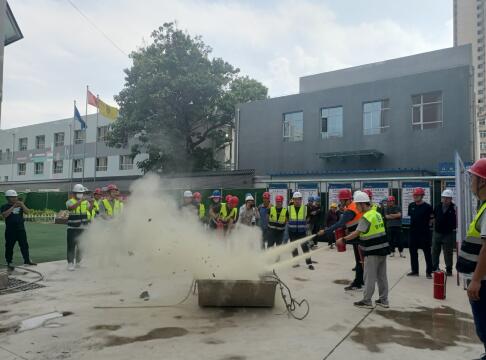 6月15日,甘肅建投4#綜合樓項目組織開展消防知識培訓(xùn)及應(yīng)急演練,七里河區(qū)質(zhì)量安全監(jiān)督站相關(guān)人員、現(xiàn)場工人及各參建單位項目管理人員參加。本次演練模擬因臨電線路老化引發(fā)料場火情,演練火情發(fā)生后應(yīng)急處理及事后處置流程。演練開始前安全管理人員現(xiàn)場教授如何正確使用滅火器,演示不同類型的滅火器的使用方法和適用范圍。在模擬火情發(fā)生現(xiàn)場,用真實的火焰、煙霧場景進行演練,在演練過程中,參與人員充分發(fā)揮了應(yīng)急救援的能力,大家根據(jù)實際場景,通過使用滅火器進行撲滅火源,更加深刻地認(rèn)識到了火災(zāi)事故的危害,以及滅火器的重要作用。