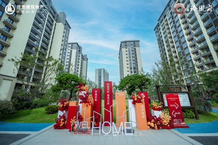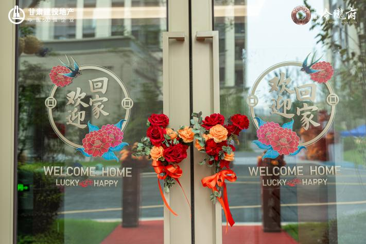經(jīng)過盛裝布置,園區(qū)沿途一路鋪裝紅毯,枝頭掛滿紅燈籠,單元門口點(diǎn)綴燦爛花束,隨處可見“歡迎回家”的標(biāo)語,“回家”的暖流直抵人心。