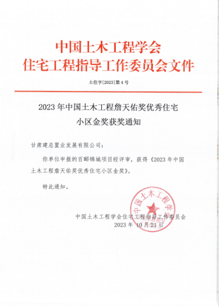 “詹天佑獎優(yōu)秀住宅小區(qū)金獎”是百酈錦城項目繼2022年榮獲地產行業(yè)最高榮譽“廣廈獎”之后又一國家級重要獎項,是甘肅建投首個同時獲得“廣廈獎”和“詹天佑獎優(yōu)秀住宅小區(qū)金獎”的項目,充分體現(xiàn)了業(yè)界對甘肅建投地產質量、品質及科技創(chuàng)新的肯定。