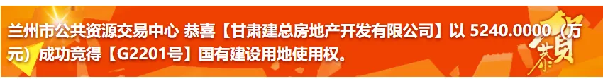 5月12日,甘肅建總房地產開發(fā)有限公司以5240萬元成功競得【G2201號】國有建設用地使用權。