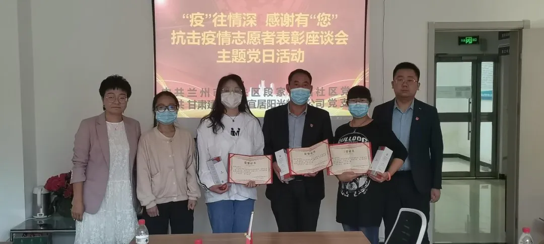 9月8日,物業(yè)公司黨支部聯(lián)合段家灘西社區(qū)黨委組織開(kāi)展以“'疫'往情深,感謝有'您'”為主題的抗擊疫情志愿者表彰座談主題黨日活動(dòng)。來(lái)自建工瑞景、金悅府和南河庭院小區(qū)的17名志愿者代表,代表三個(gè)小區(qū)受表彰的46名志愿者接受表彰。