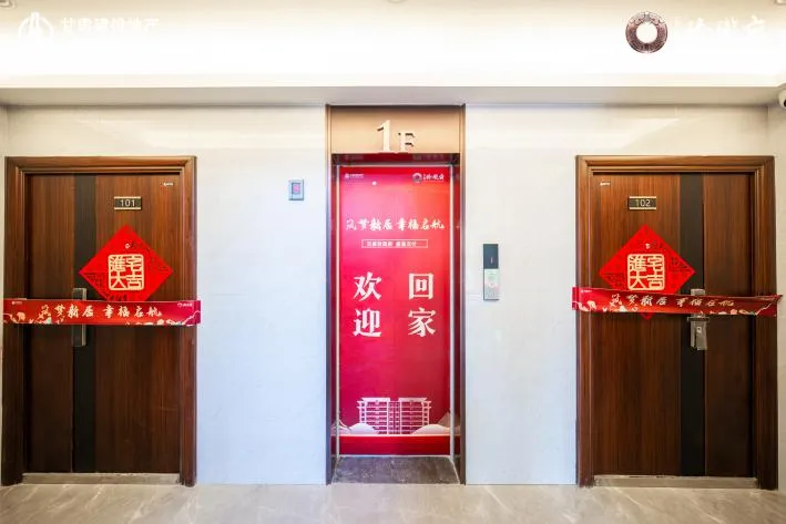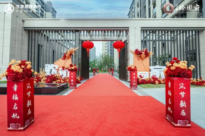 經(jīng)過盛裝布置,園區(qū)沿途一路鋪裝紅毯,枝頭掛滿紅燈籠,單元門口點綴燦爛花束,隨處可見“歡迎回家”的標語,“回家”的暖流直抵人心。