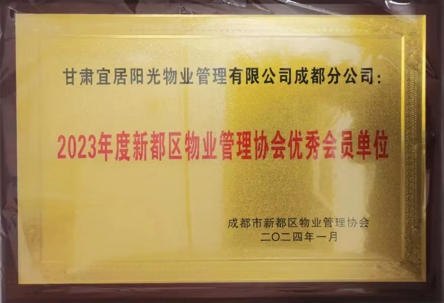 近日,成都市新都區(qū)住房和城鄉(xiāng)建設(shè)局、住房發(fā)展服務(wù)中心、物業(yè)管理協(xié)會(huì)組織召開了新都區(qū)物業(yè)行業(yè)2023年總結(jié)表彰大會(huì),置業(yè)公司宜居陽(yáng)光物業(yè)公司成都分公司喜獲2023年度新都區(qū)物業(yè)行業(yè)先進(jìn)單位和2023年度新都區(qū)物業(yè)管理協(xié)會(huì)優(yōu)秀會(huì)員單位稱號(hào)。
