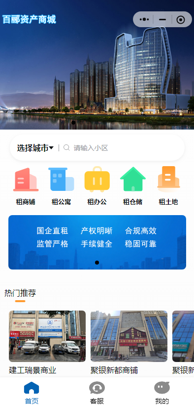 “百酈云商”小程序聚焦租賃市場(chǎng)需求,以置業(yè)公司蘭州片區(qū)、天水片區(qū)及河西片區(qū)為依托,以資產(chǎn)線上展示與客戶高效對(duì)接為核心,精心布局商鋪、辦公、公寓、倉儲(chǔ)以及土地五大板塊,通過租賃及銷售為商業(yè)、娛樂、辦公、倉儲(chǔ)等不同領(lǐng)域的項(xiàng)目開發(fā)提供空間支持。