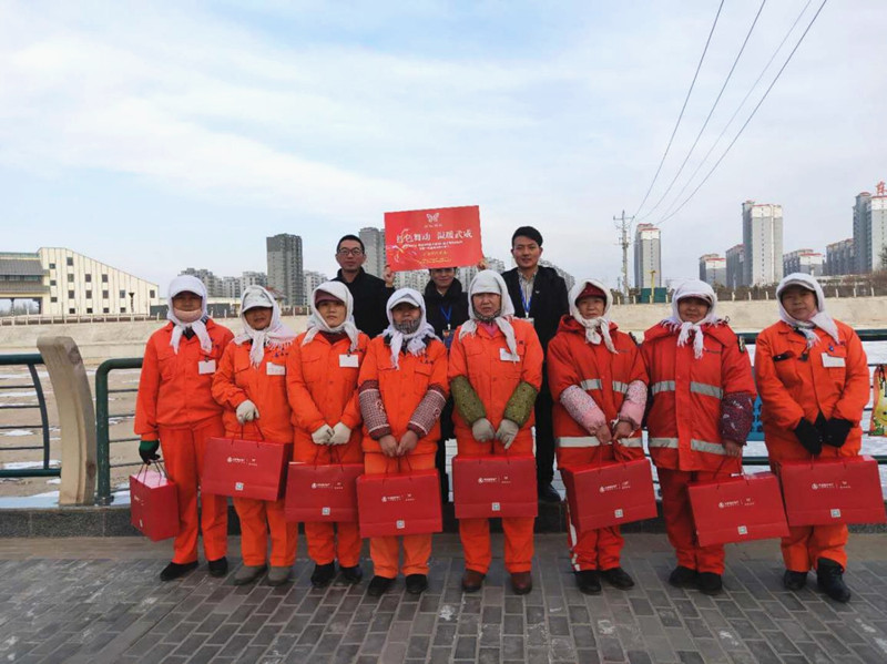 當(dāng)日,武威分公司團(tuán)隊(duì)為寒冬里堅(jiān)守在崗位的環(huán)衛(wèi)工人、城管、交警們送上圍巾、暖寶寶、保溫杯等一份份暖心禮物,讓這些城市的守護(hù)者們感受到來自大家庭的溫暖。